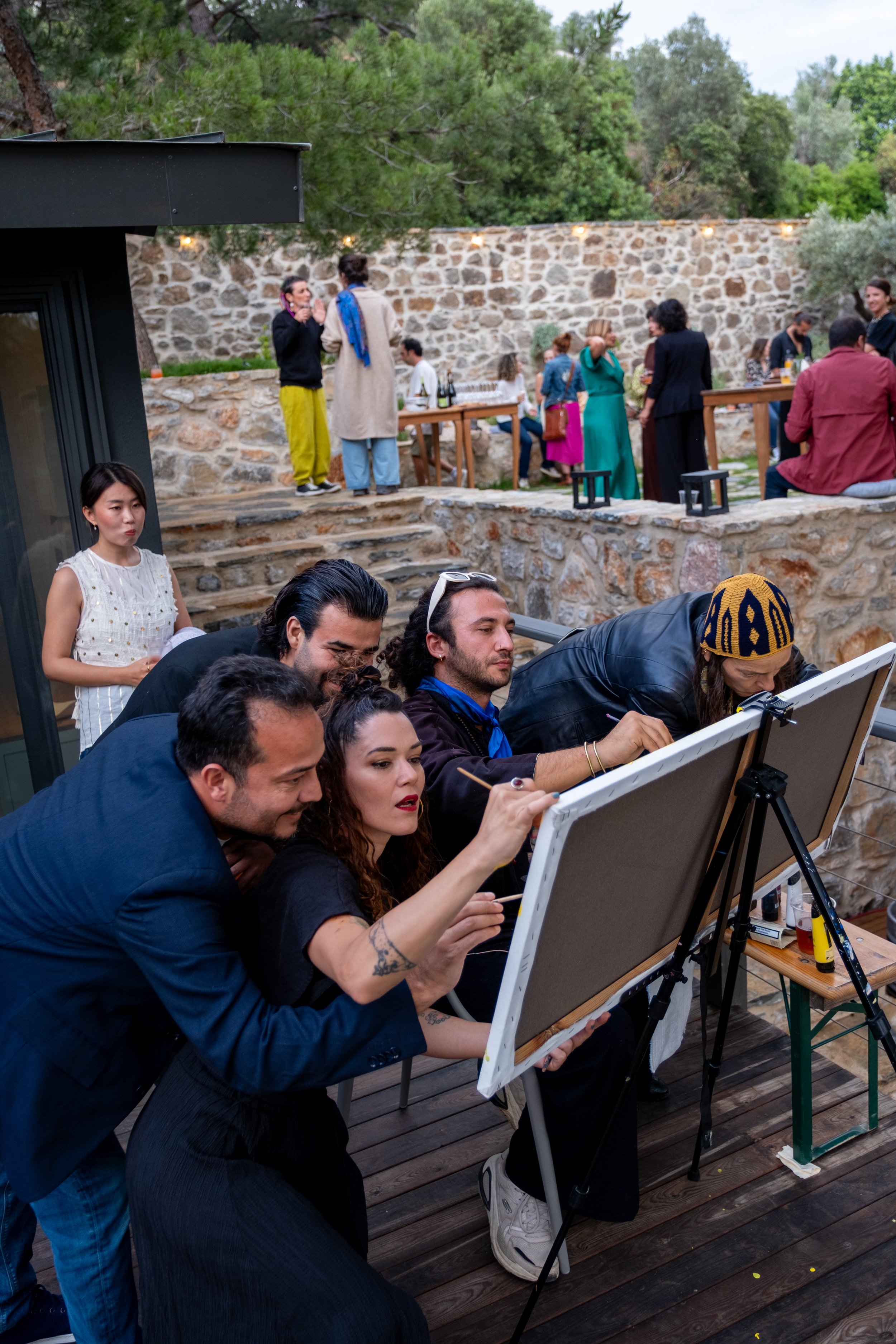 During the DAA’da Bahar evening, a collective painting was created with Erin and our community — a spontaneous gesture of shared creation. Later, it was auctioned to our guests, turning a moment of togetherness into a gesture of support for future residencies.